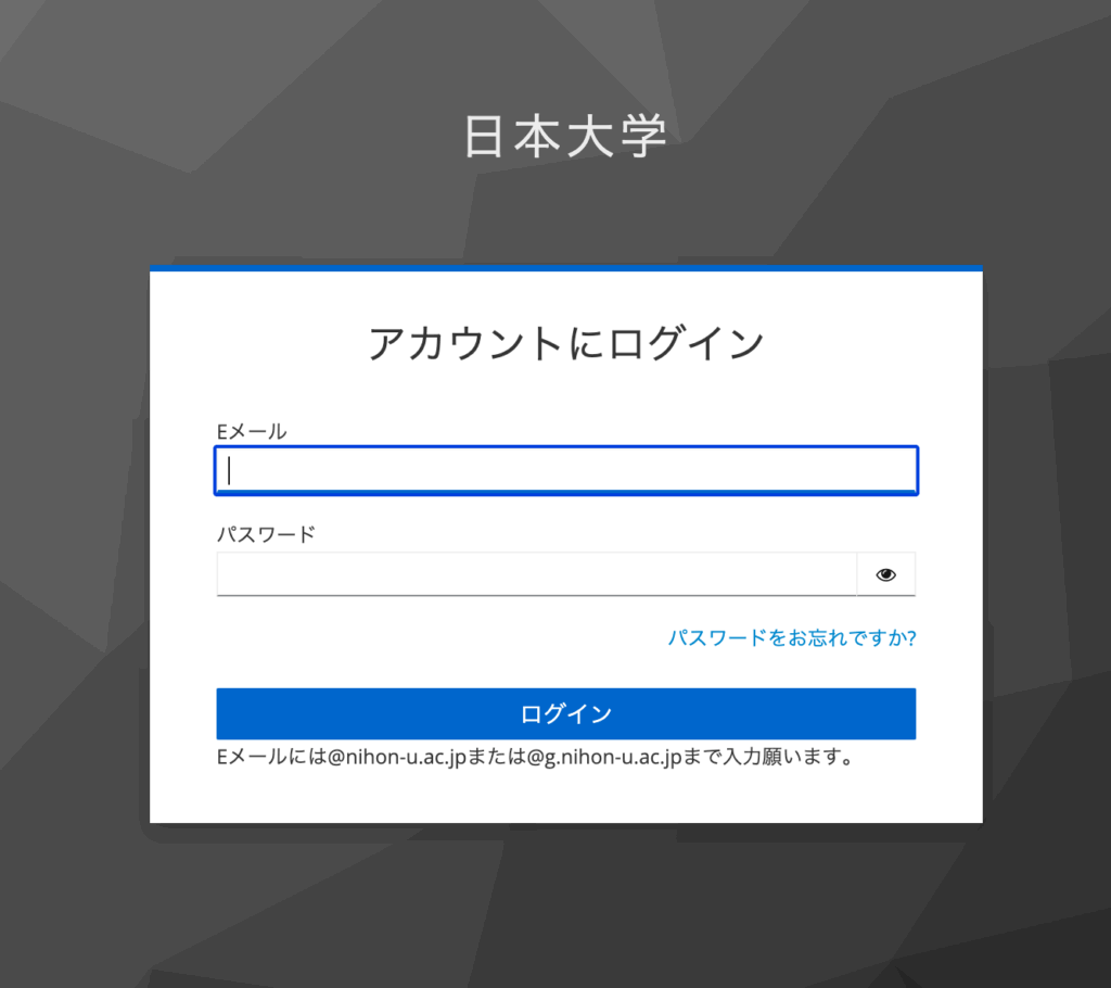 - ⇒変更後:Eメールに「~~@g.nihon-u.ac.jp」を含めたメールアドレス全てを入力